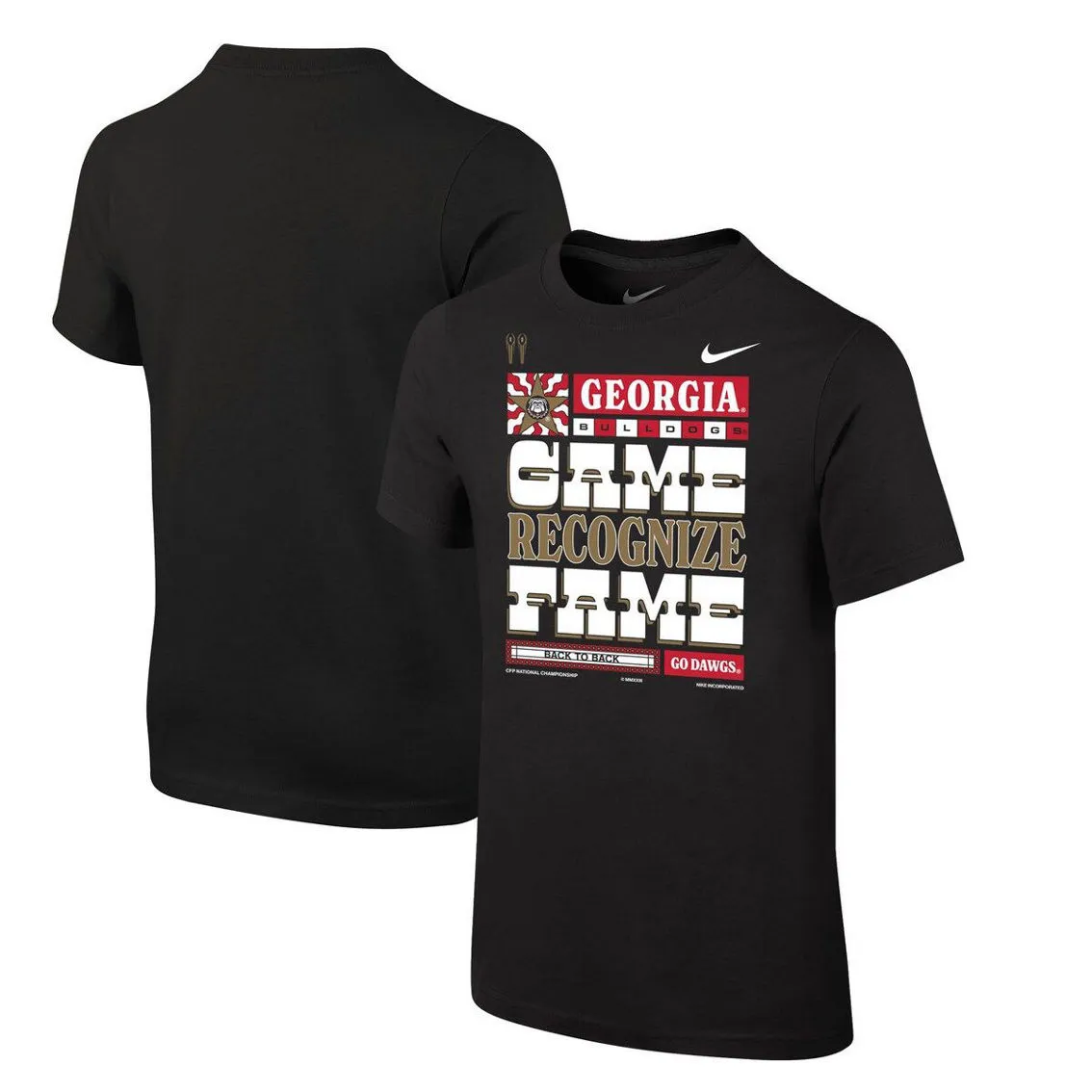 - After an exhilarating season, the Georgia Bulldogs are now the College Football Playoff 2022 National Champions! They pulled off all the right plays on both sides of the ball to claim their spot as the best in the country. Have your young fan show off their excitement for the Georgia Bulldogs by grabbing this Locker Room T-Shirt from Nike. Special commemorative graphics -the same worn by the team immediately after the game- will help your kiddo celebrate this National Championship and incredible victory for the Georgia Bulldogs.